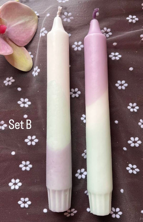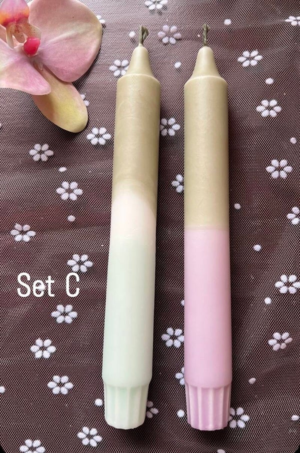Leuke set van 2 dipkaarsen in drie verschillende variaties. Zie de foto's voor de variaties.