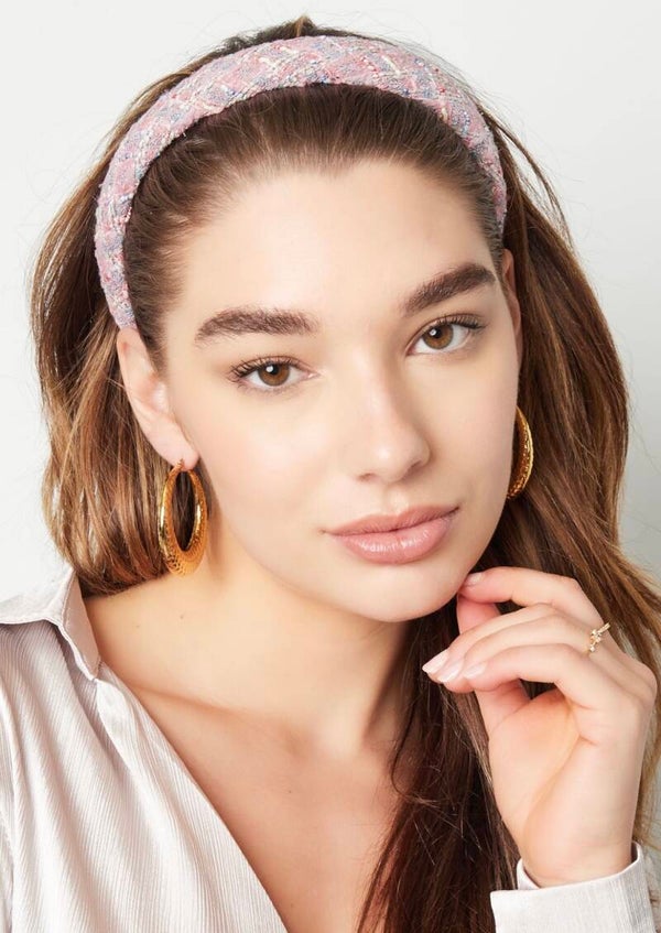 Hoe leuk is deze brede haarband met grof patroon in de kleur roze. De haarband is gemaakt van plastic in combinatie met polyester.