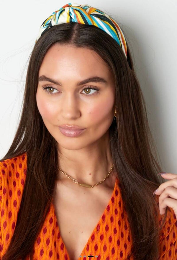 Trend alert! Haarbanden zijn weer helemaal trendy en maken jouw outfit helemaal compleet. De haarband is gemaakt van plastic in combinatie met polyester. Verkrijgbaar in wit/multi en paars/multi.