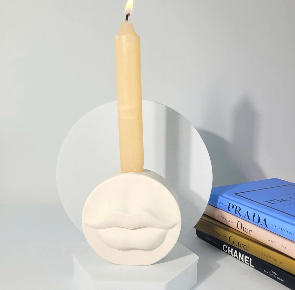Een prachtig handgemaakte kandelaar met lippen. Dit is zeker een ware eyecatcher voor jouw interieur. We maken deze kandelaar in verschillende kleuren. Dus ook voor jouw interieur hebben wij de juiste kleur.