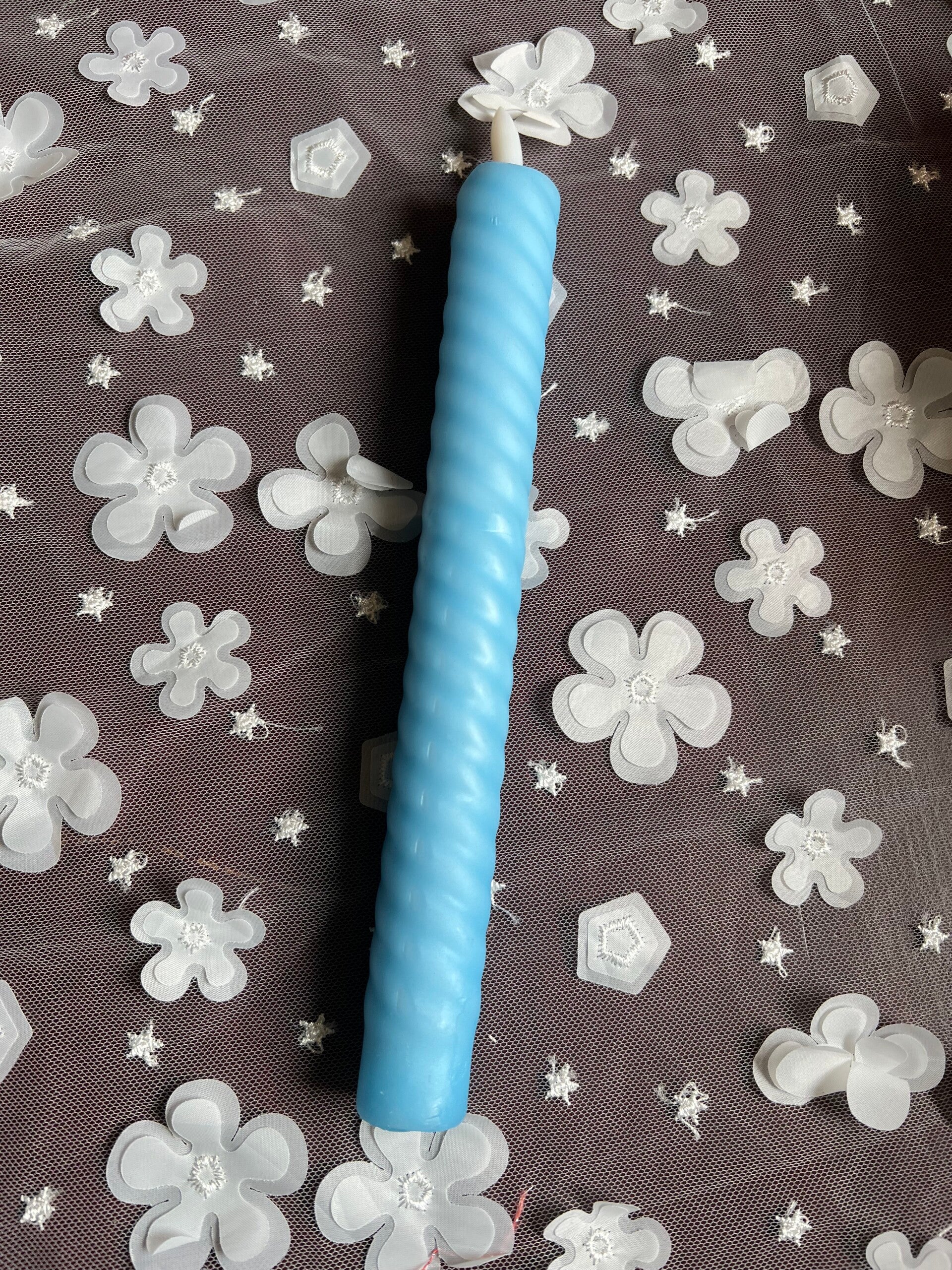 Let op: mocht de kaars niet passen (door het dippen is de kaars wellicht wat dikker geworden) druk dan niet door want dan kan de kaars breken. Haal met een mesje aan de onderkant wat van het bovenste laagje wax af, totdat de kaars perfect past in jouw kandelaar.