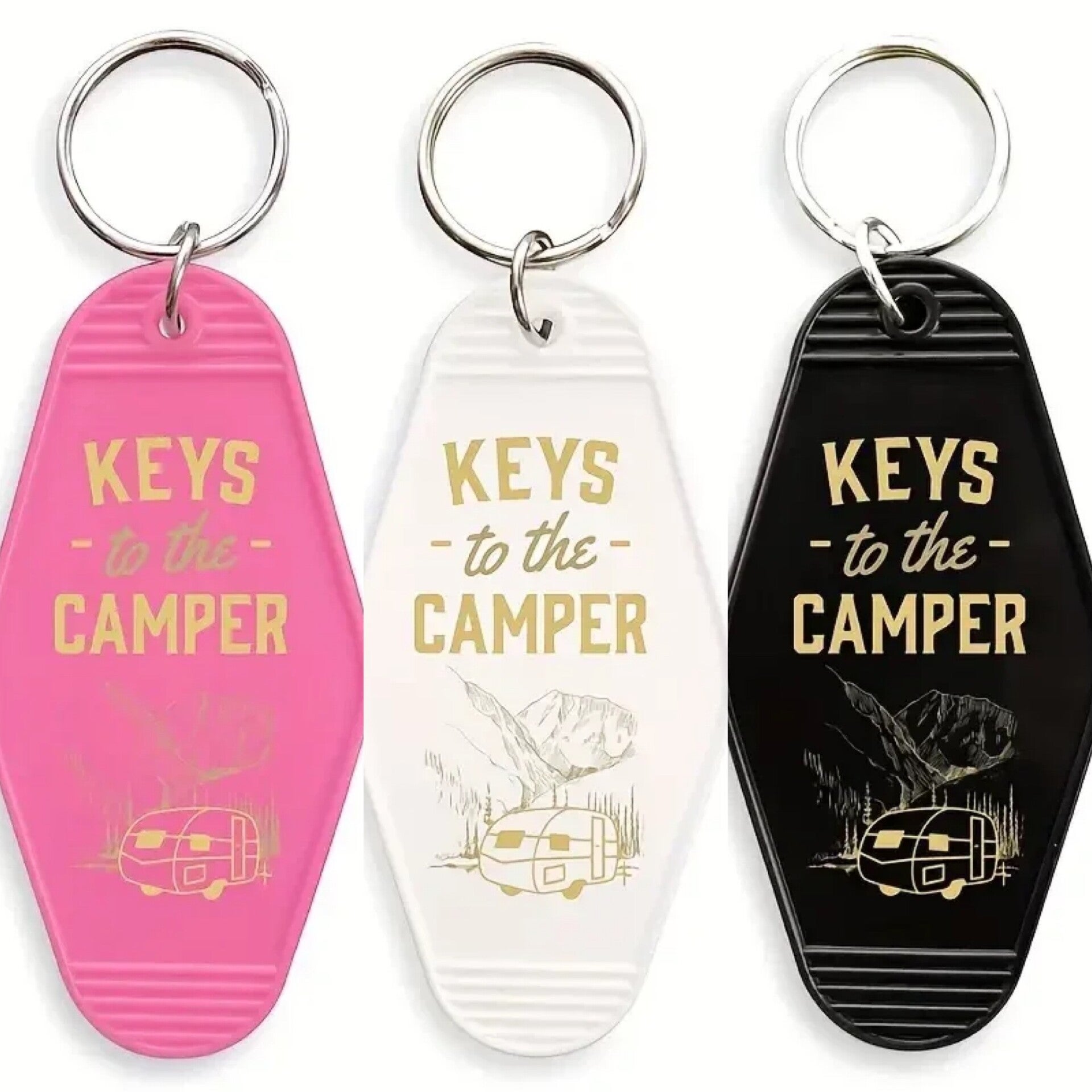 Voor de camper eigenaren onder ons. Het kan maar duidelijk zijn waar de sleutels die aan deze sleutelhanger hangen voor bestemd zijn. Verkrijgbaar in de kleuren roze, wit en zwart.