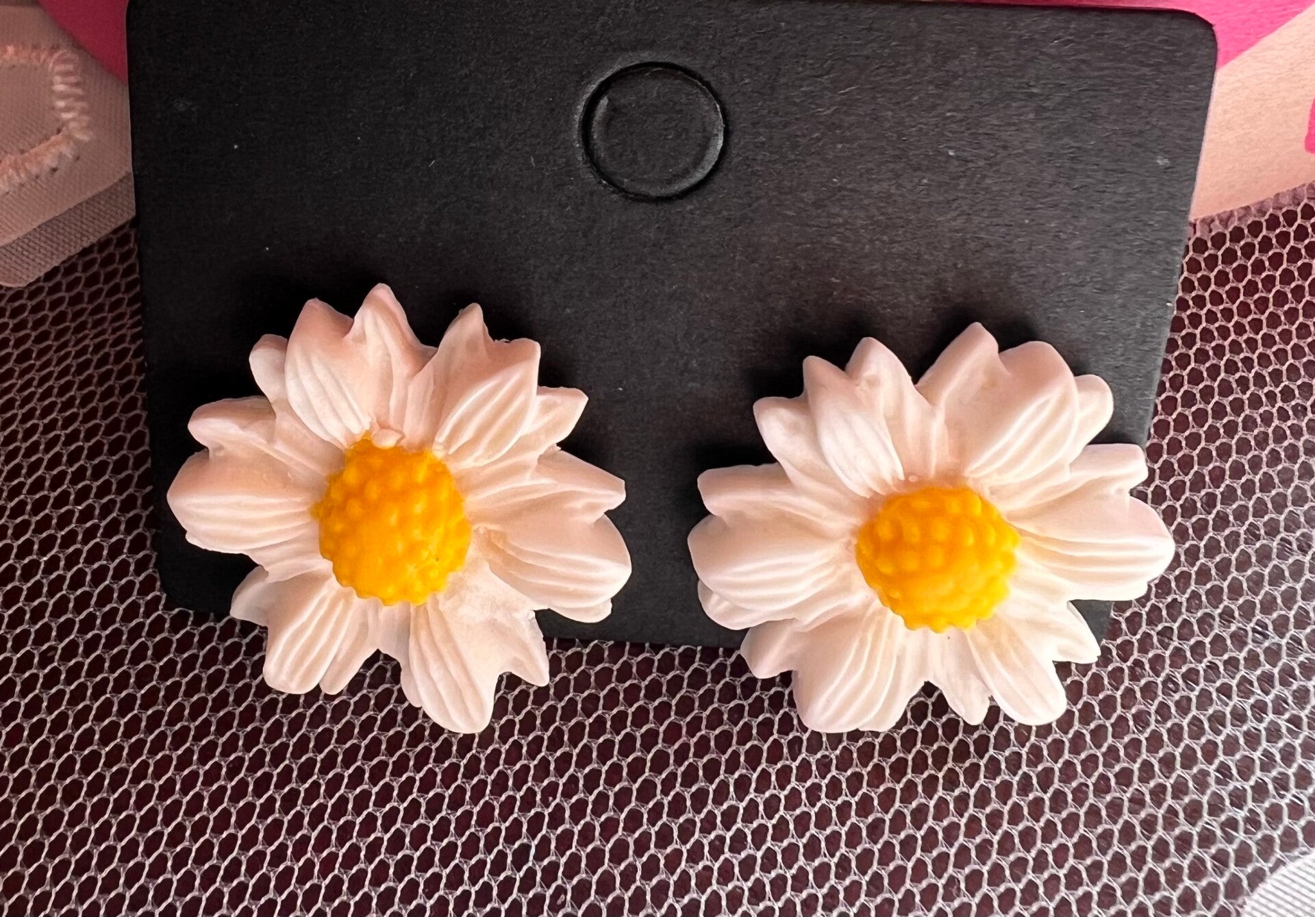 Naast de hangers hebben we nu ook onze populaire Daisy oorbellen met een oorknop. Gemaakt van polymeer klei in de vorm van margrietjes en nickle free metal. Het voordeel van polymeer klei: de oorbellen zijn echt super licht! Elk paar is handgemaakt en daardoor uniek. Omdat de oorbellen per stuk worden gemaakt kan het zijn dat de oorbel iets afwijkt van de foto.