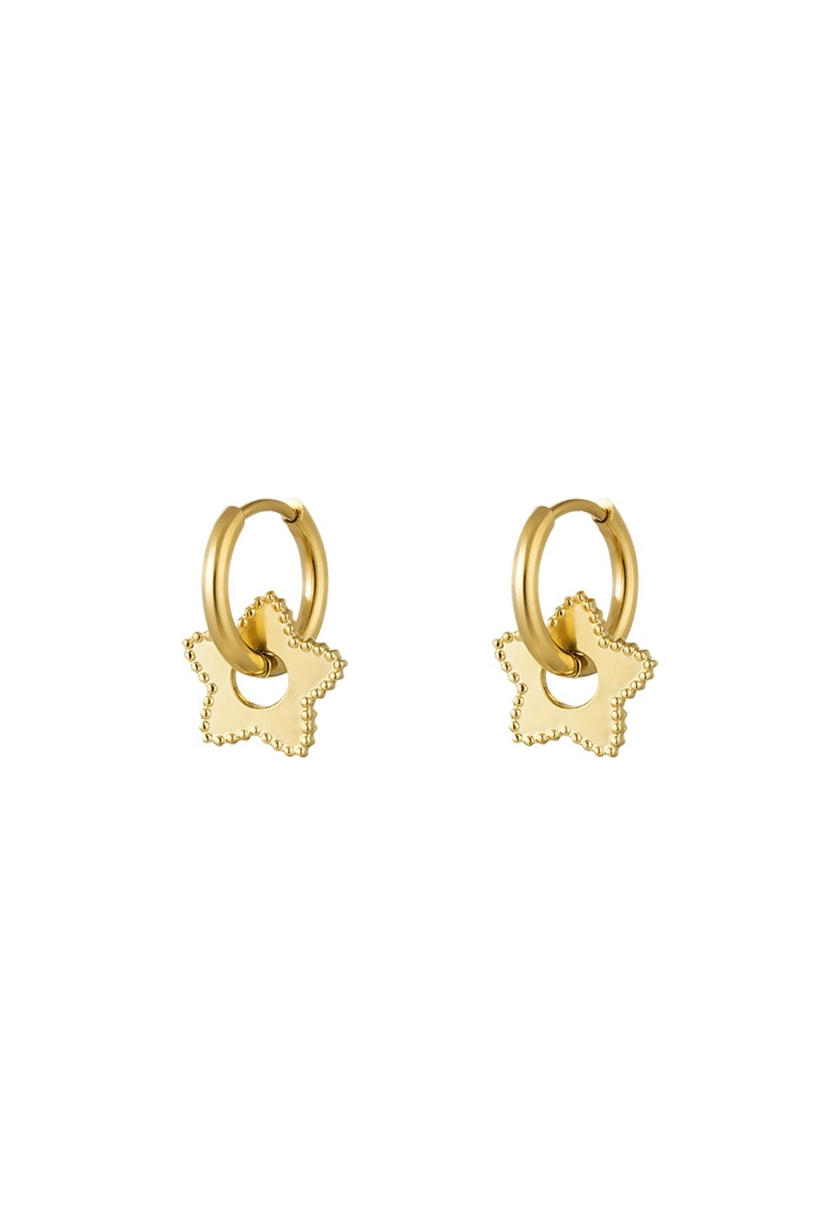 Hoe tof is dit gouden paar oorbellen met vrolijke bedel in de vorm van een bloem. De oorbellen zijn zeer minimalistisch en zijn daardoor perfect te combineren met elk paar andere oorbellen. De oorbellen hebben een lengte van 1,9 cm en zijn gemaakt van stainless steel.