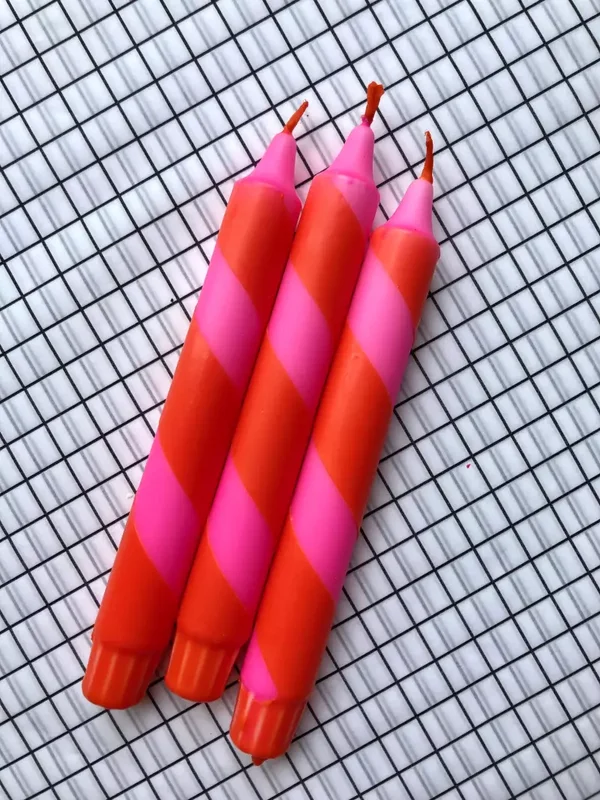 De kaarsen zijn met de hand gekleurd. Iedere kaars is daarom uniek, maar 1 ding hebben ze met elkaar gemeen....ze hebben prachtige kleuren die ieder interieur opvrolijken! De kaarsen zijn gemaakt van stearine, zijn 19 cm lang en branden zo'n 6 a 7 uur.