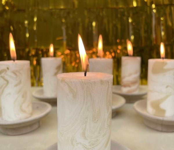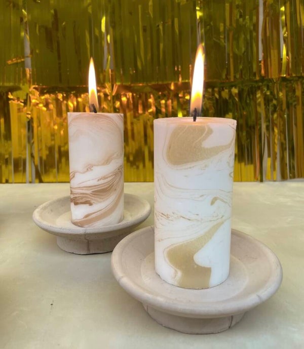 Speciaal voor herfst/winter 2023 heeft Rustik Lys deze dinerkaarsen met de hand gedipt waardoor ze dus allemaal een unieke marmer print hebben. Verkrijgbaar in de kleuren brons, goud, eucalyptus en siena.