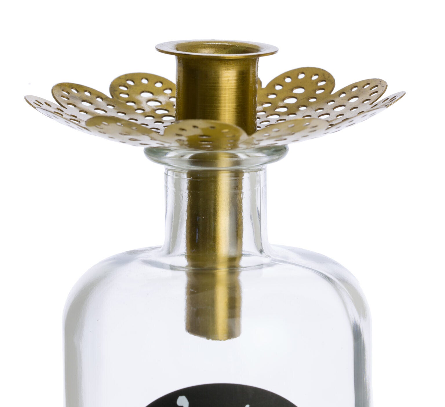 Creëer in een handomdraai je eigen kandelaar. Deze fleskandelaar in de vorm van een bloem past precies in een lege fles. Deze kandelaar is speciaal gemaakt voor standaard dinerkaarsen. Zorg ervoor dat de kaars niet te zwaar is want we willen niet dat de kandelaar gaat wankelen.