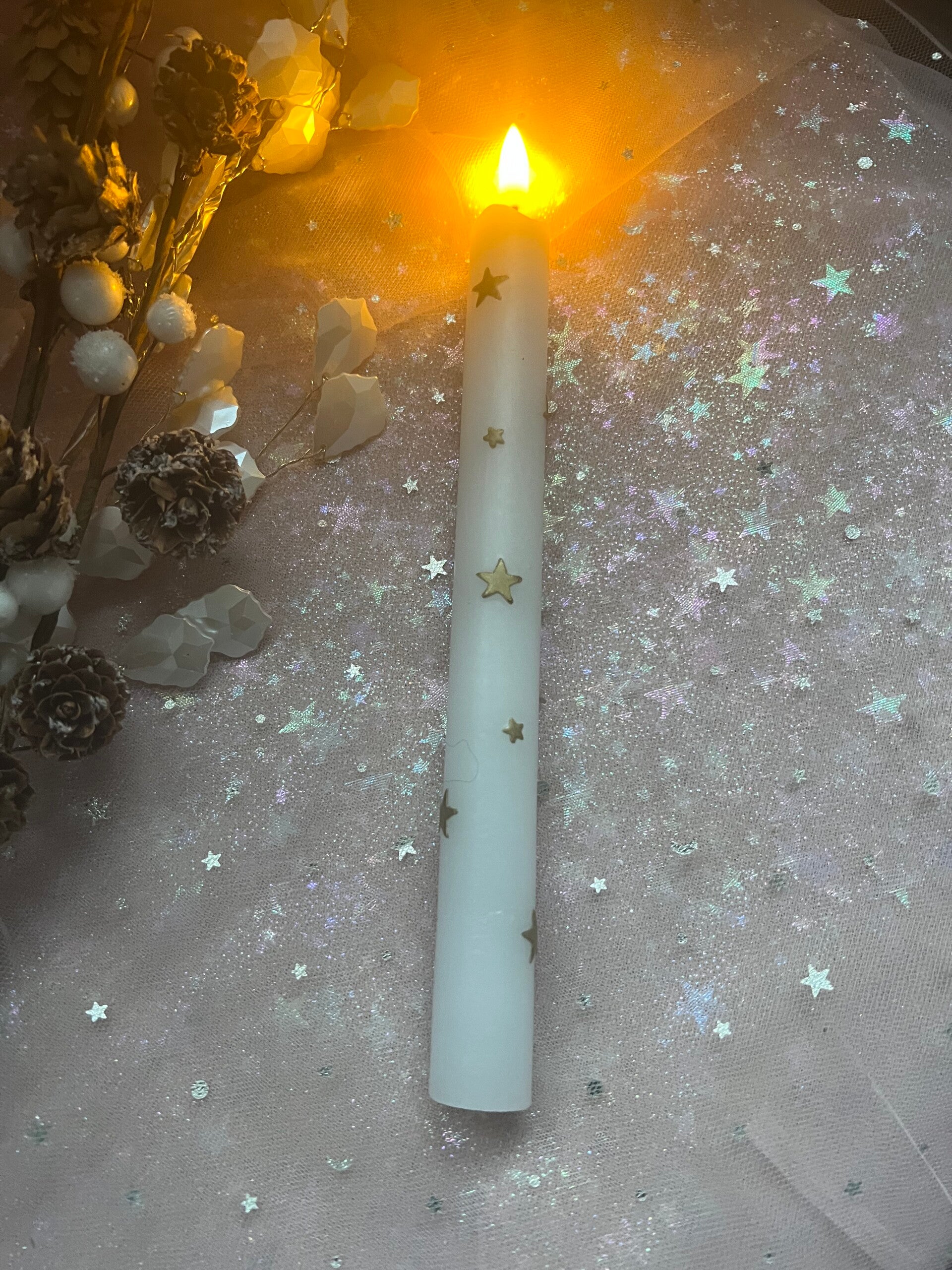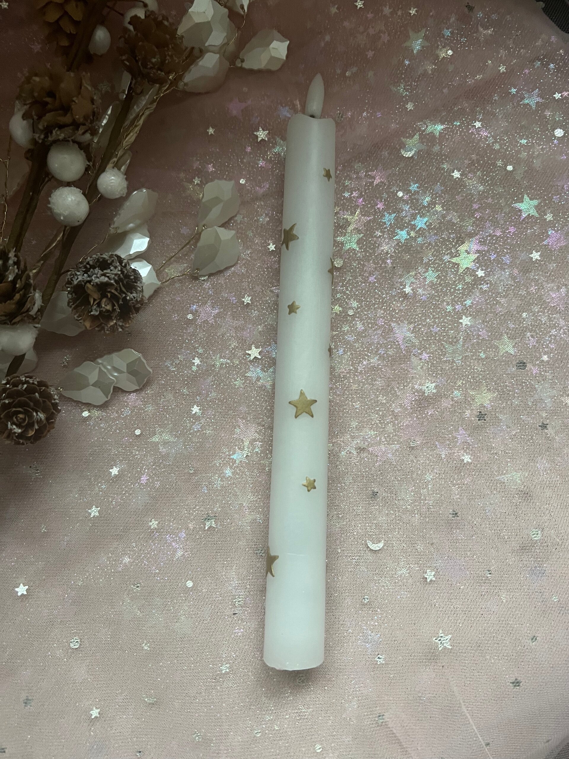 De LED kaarsen zonder ribbel kunnen wij versieren met sterretjes. Hoe gezellig staan deze kaarsen straks bij jou in de huiskamer. Je kunt kiezen uit zilveren of gouden sterretjes.