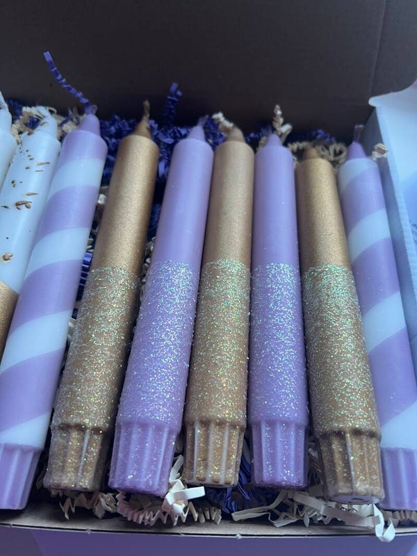 Voor wie van goud en glitters houdt is dit de perfecte kaars. Eerst dippen we de kaars in wax en daarna gaat er nog een glitter laag overheen.