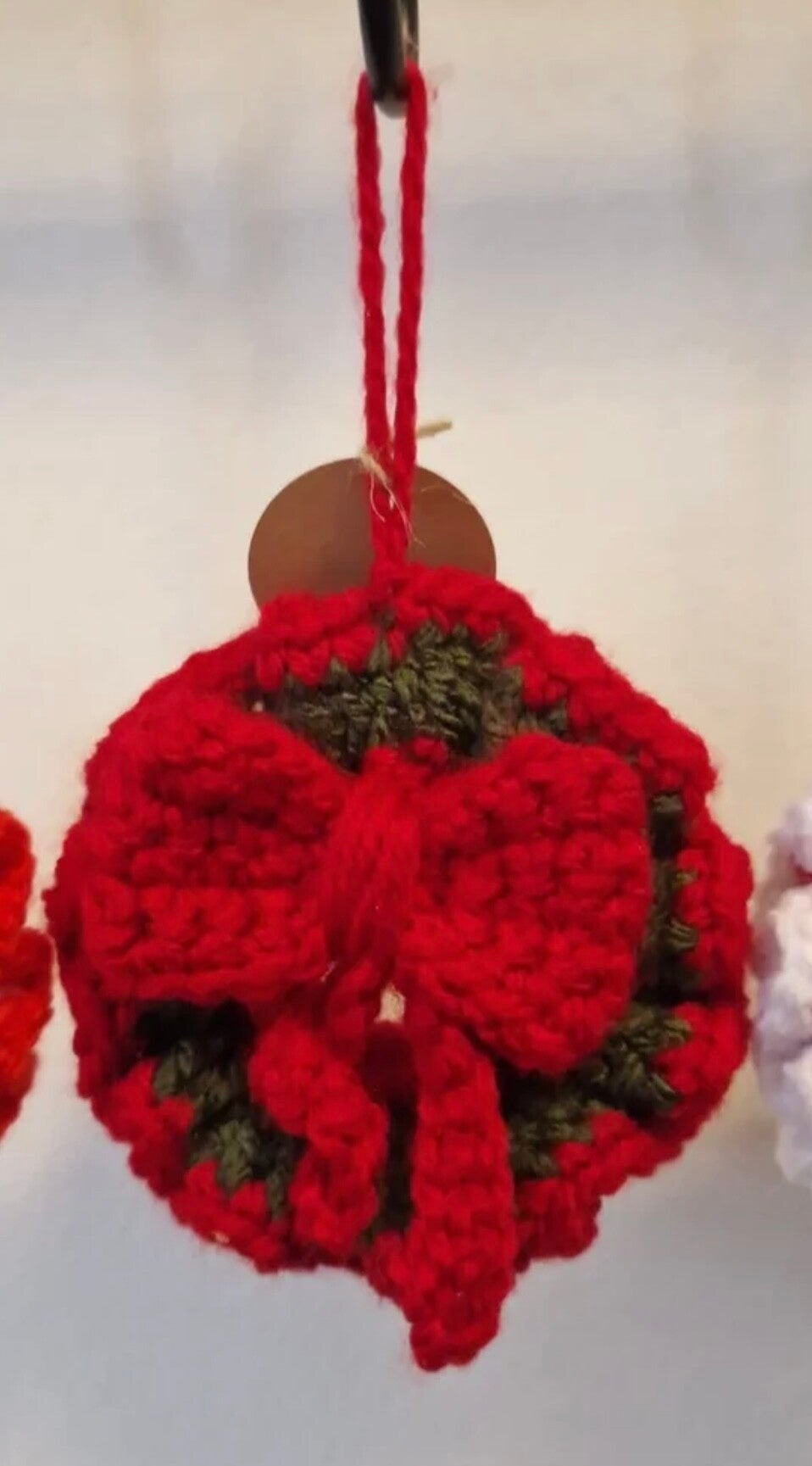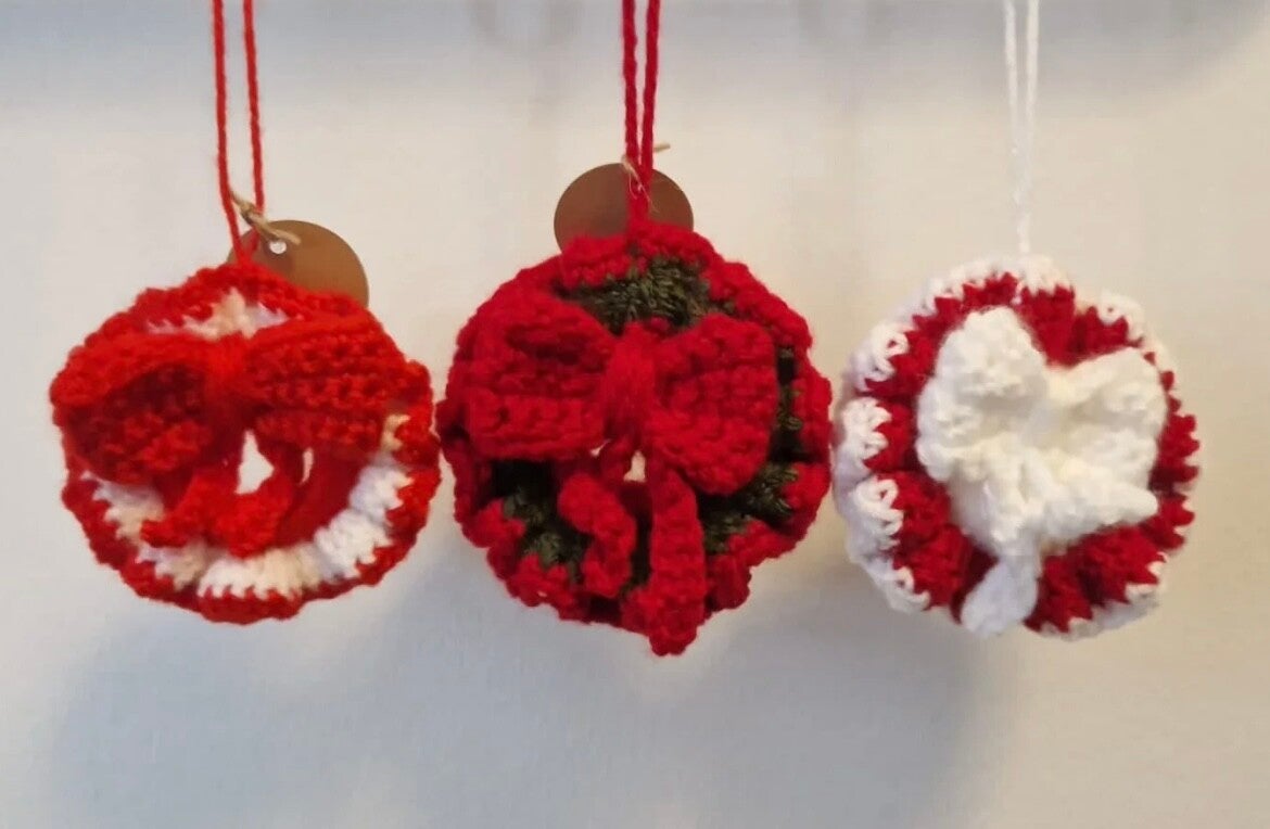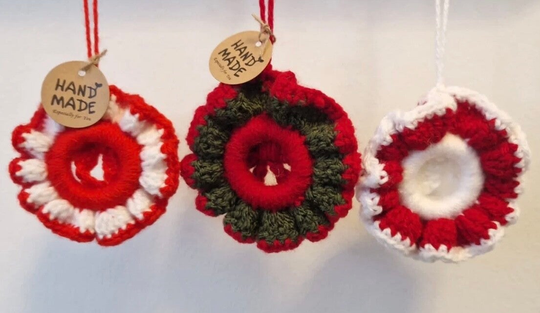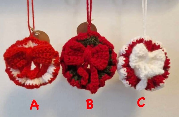 Hoe schattig zijn deze kerstkransen. Deze kransjes worden met liefde met de hand gehaakt door Mirjam. Keuze uit 3 modellen/kleurstellingen.
