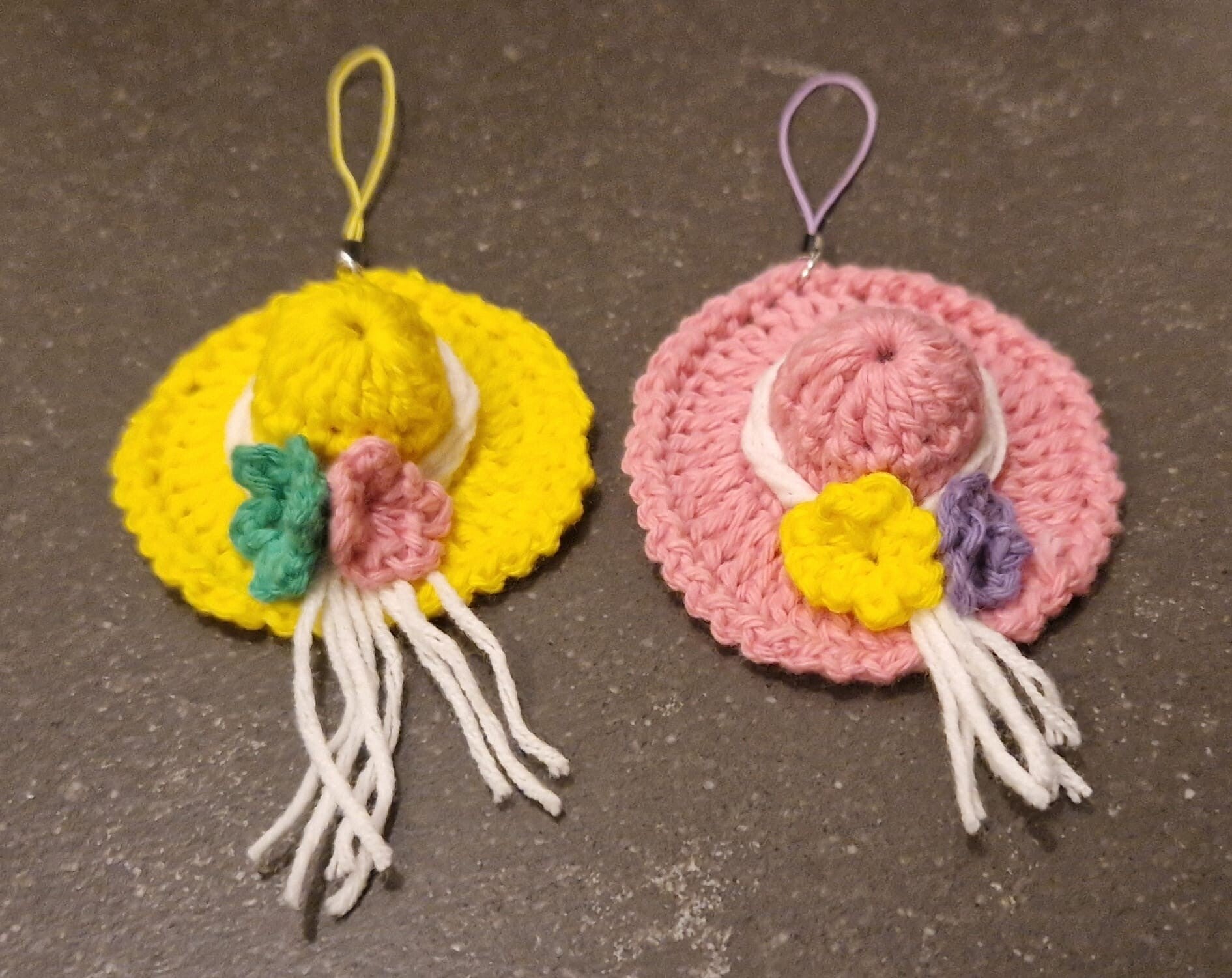 Hoedje op hoede je af. Dit hoedje is niet om op te zetten maar wel om aan je tas of aan je sleutelbos te hangen. Doorsnede van de hoedjes is ca. 6 cm.