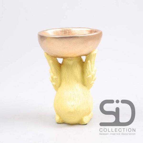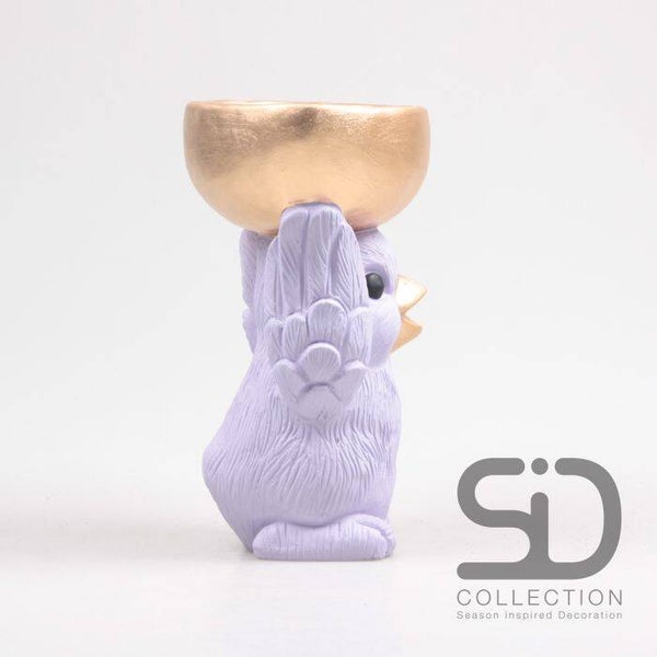 Deze vogel houdt een schaaltje vast waar je bijv. de chocolade eitjes in kunt doen. Leuk voor op de brunchtafel met Pasen, of in de huiskamer rond Pasen. Verkrijgbaar in 3 kleuren.