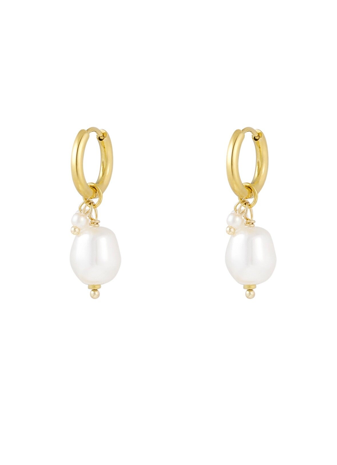 Hoe leuk is deze oorbel? De oorbellen zijn gemaakt van roostvrihstaal en er zitten 2 parel bedels aan.
