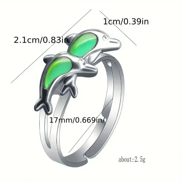 Deze ringetjes reageren op temperatuur en dan verkleuren de dolfijntjes. Zo heb je steeds een andere kleur ring om. Het ringetje is verstelbaar.
