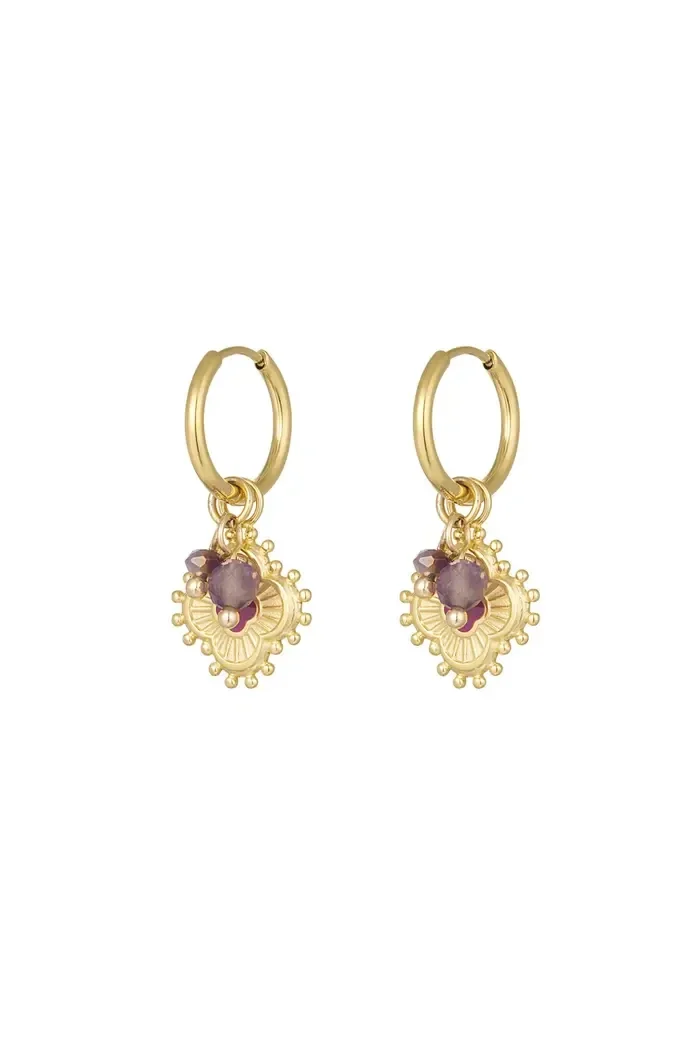 OMG! Deze gouden oorbellen met klaver bedel en paarse kraaltjes zijn een echte musthave! De oorbellen zijn perfect te combineren met letterlijk elke andere oorbel en mag daarom zeker niet missen in jouw assortiment. Daarnaast zijn deze oorbellen perfect voor een tof feestje maar ze kunnen ook zeker alledaags gedragen worden. De oorbellen zijn gemaakt van stainless steel, enamel en glas kralen en hebben een afmeting van 2,6 cm.