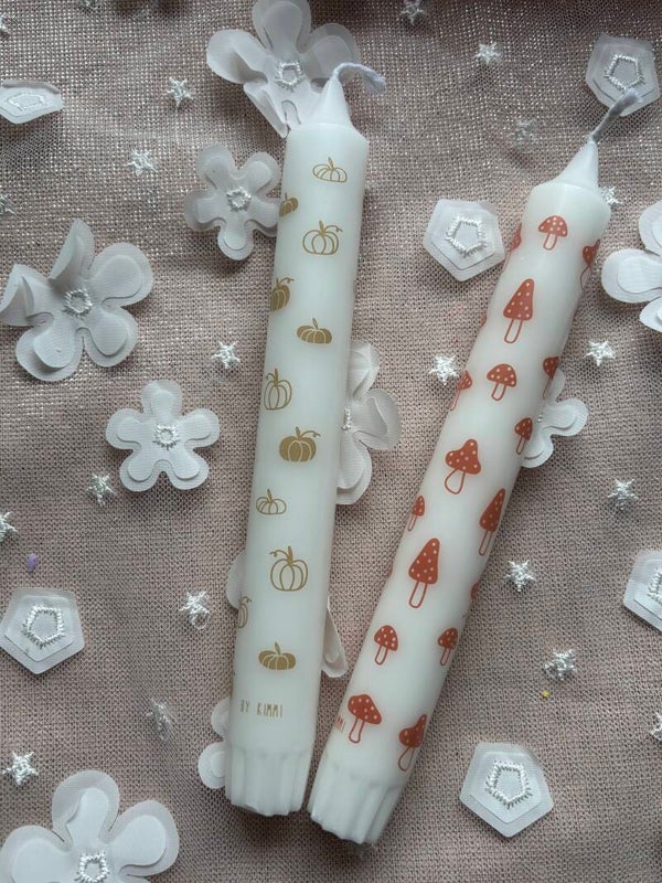 Helemaal klaar voor het najaar 2024 met deze leuke dinerkaarsen van Rustik Lys met een paddenstoelen printje. Gemaakt van stearine, een natuurlijk materiaal, waardoor deze kaarsen eco-friendly zijn. Versierd met de handgetekende By Kimmi printjes ontpopt deze dinerkaars zich ineens als een ware eyecatcher. Licht uit, kaars aan!
