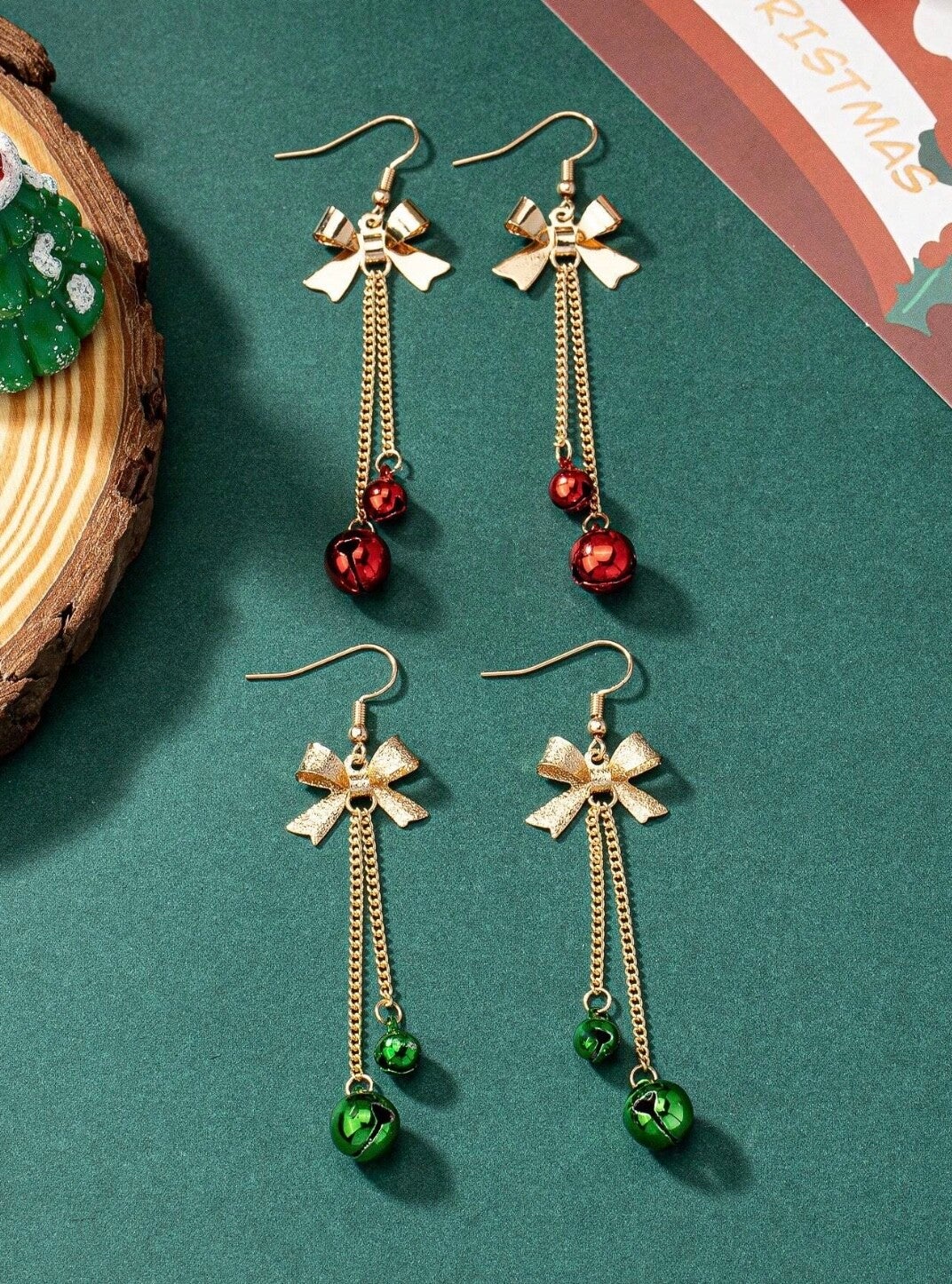 Oorbellen strikje en kerstballetjes- Rood en Groen