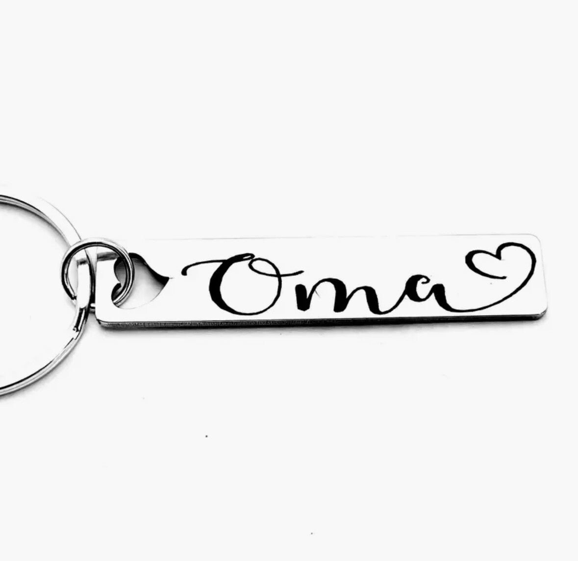 Een superleuke sleutelhanger met de tekst 'oma'.