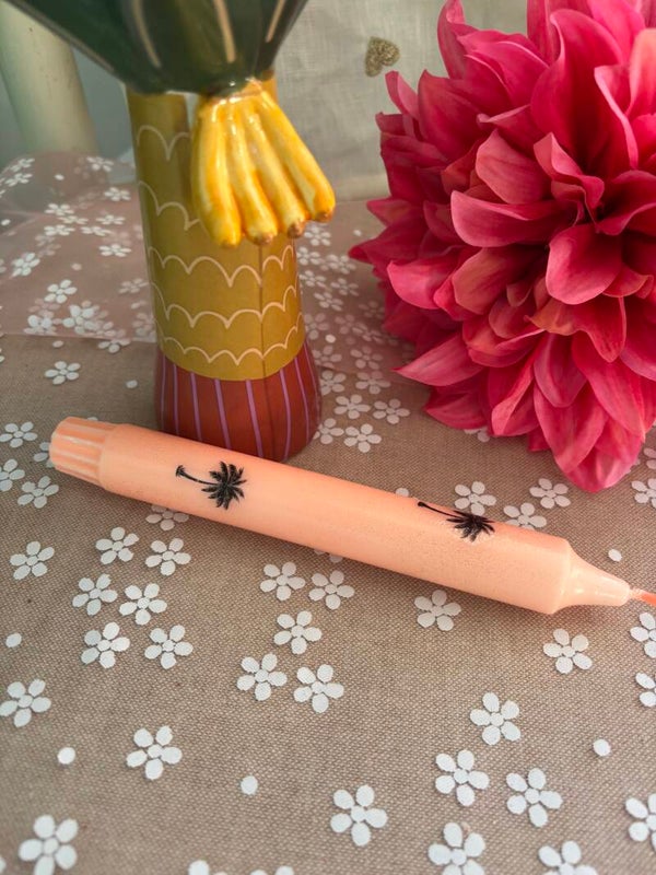 Kaars met rondom zwarte palmbomen.