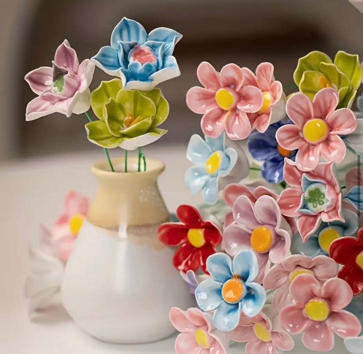 Mooie kleine keramieken bloemen ter decoratie voor in de huiskamer, tuin of bruiloft.