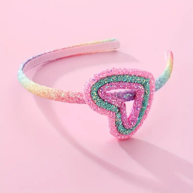 Hoe leuk is deze haarband met glitter in alle kleuren van de regenboog.