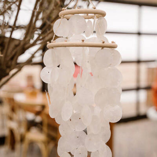 Deze prachtige windmobiel is gemaakt van de capiz schelp en is een echte eye-catcher voor in de tuin of in je huis. Voor liefhebbers van natuurlijke materialen is deze mobiel een aanrader. Erg mooi ter decoratie in de tuin of de woon-, slaap- en/of badkamer. Waar hang jij deze hanger op? De afmetingen zijn D 13 H 45 cm.