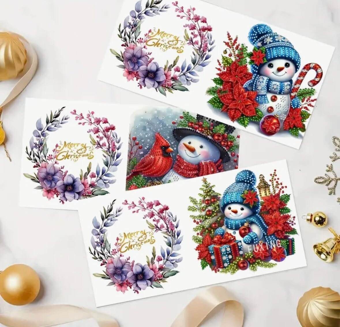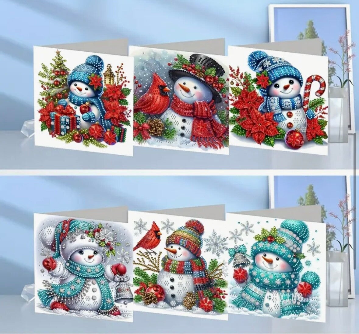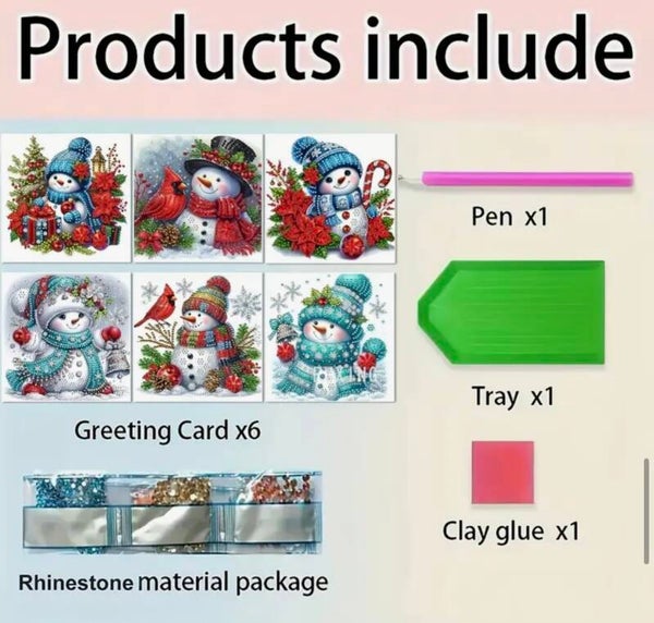 Kerstkaart Sneeuwpop - Set van 6 kaarten incl. steentjes