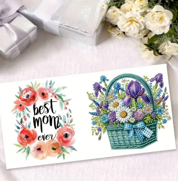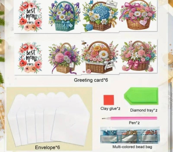 Kaart Mandje bloemen - Moederdag - Set van 6 kaarten incl. steentjes