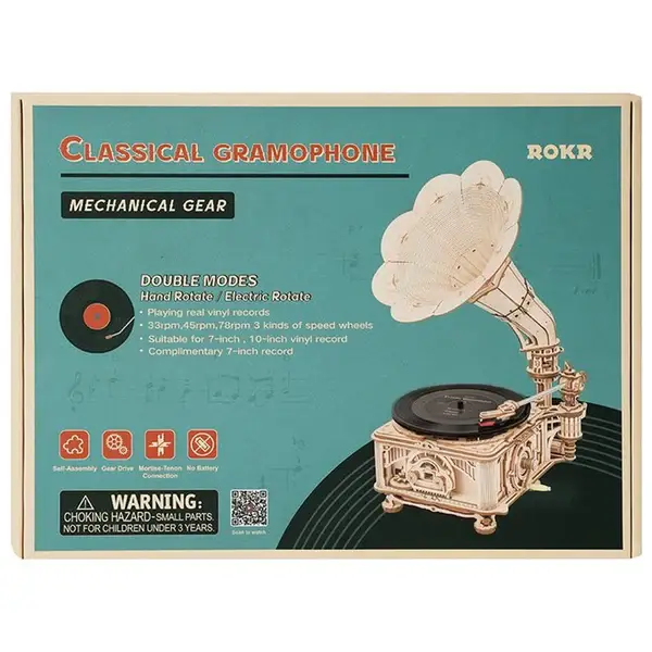 Bouwpakketten voor volwassenen zijn weer helemaal hip! Vooral vintage-voorwerpen knutselen volwassenen met liefde in elkaar. Neem nu dit houten bouwpakket van een mechanische grammofoon. De details zijn prachtig retro. Waar vind je nog krullen op je homedecoratie, alles is strak tegenwoordig. Niet jouw antieke grammofoon met echt een platenspeler die werkt. Je krijgt er zelfs een single bij met lekker krakende retromuziek van 1900.