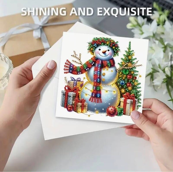 Kerstkaart Frosty - Set van 6 kaarten incl. steentjes