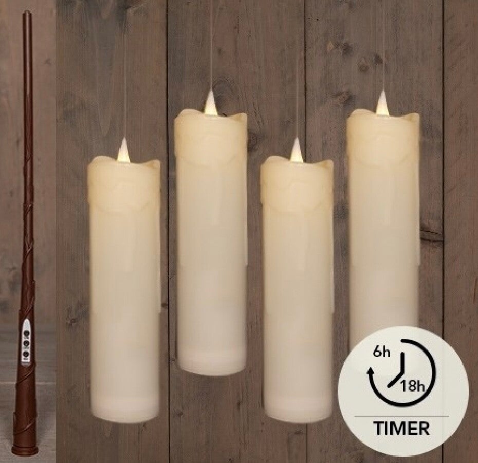 Voor de Harry Potter fans is dit natuurlijk de kerstverlichting bij uitstek! De zwevende kaarsen hebben een realistisch vlammetje als een echte kaars. De afstandsbediening is in de vorm van een toverstaf, voor het juiste Harry Potter gehalte. Met een druk op de knop kun je de kaarsen bedienen. De kaarsen hebben ook een timerfunctie. Je kunt ze met het bijgeleverde draad en haken aan het plafond bevestigen waardoor het zwevende effect ontstaat. Werkt op batterijen en is veilig in gebruik omdat er geen brandgevaar is. Al met al een voegt dit een extra magische sfeer toe aan jouw interieur!