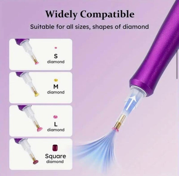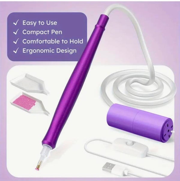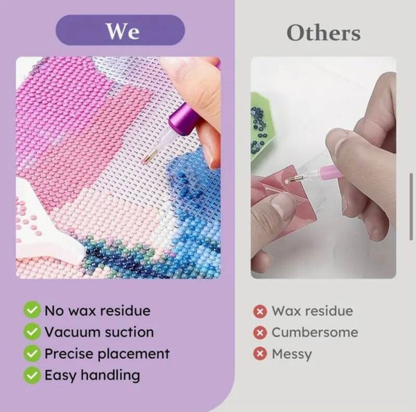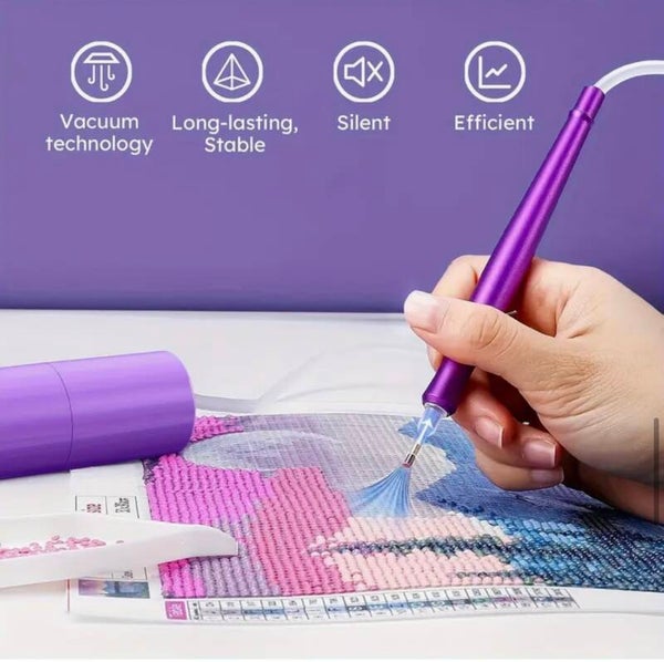 Vergeet het omslachtige werken met de conventionele diamond painting-was. Deze elektrische diamond painting-pen met vacuüm-technologie zuigt de steentjes moeiteloos aan en plaatst ze nauwkeurig. Geen was, geen moeite, geen stress.