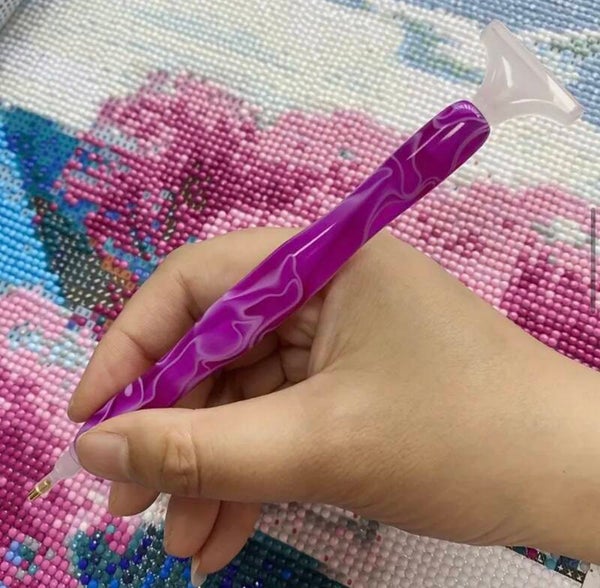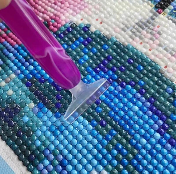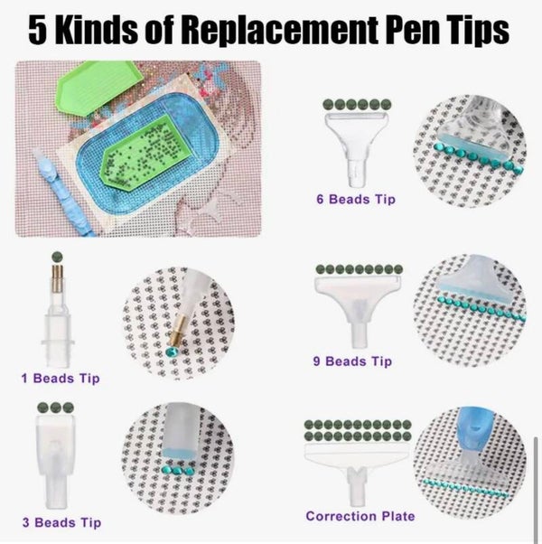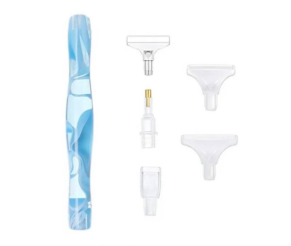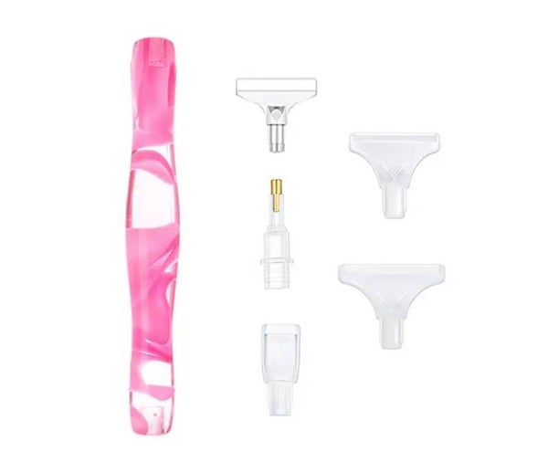 Diamond painting pen met 5 hulpstukjes waarmee je meerdere rinestones kunt plaatsen.