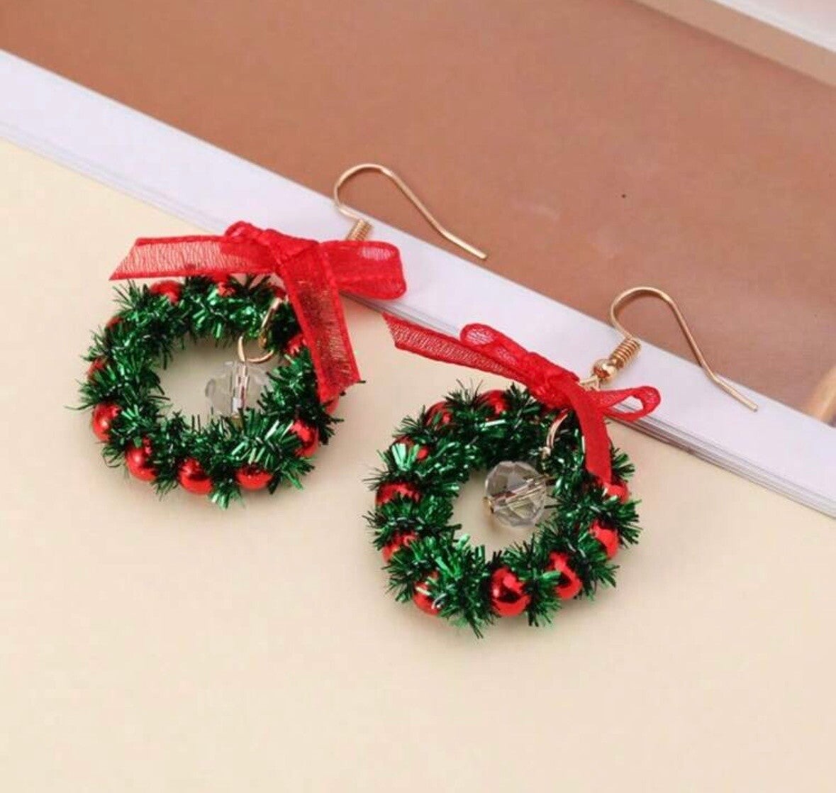 Oorbellen Kerstkrans - Strik en rode ornamenten