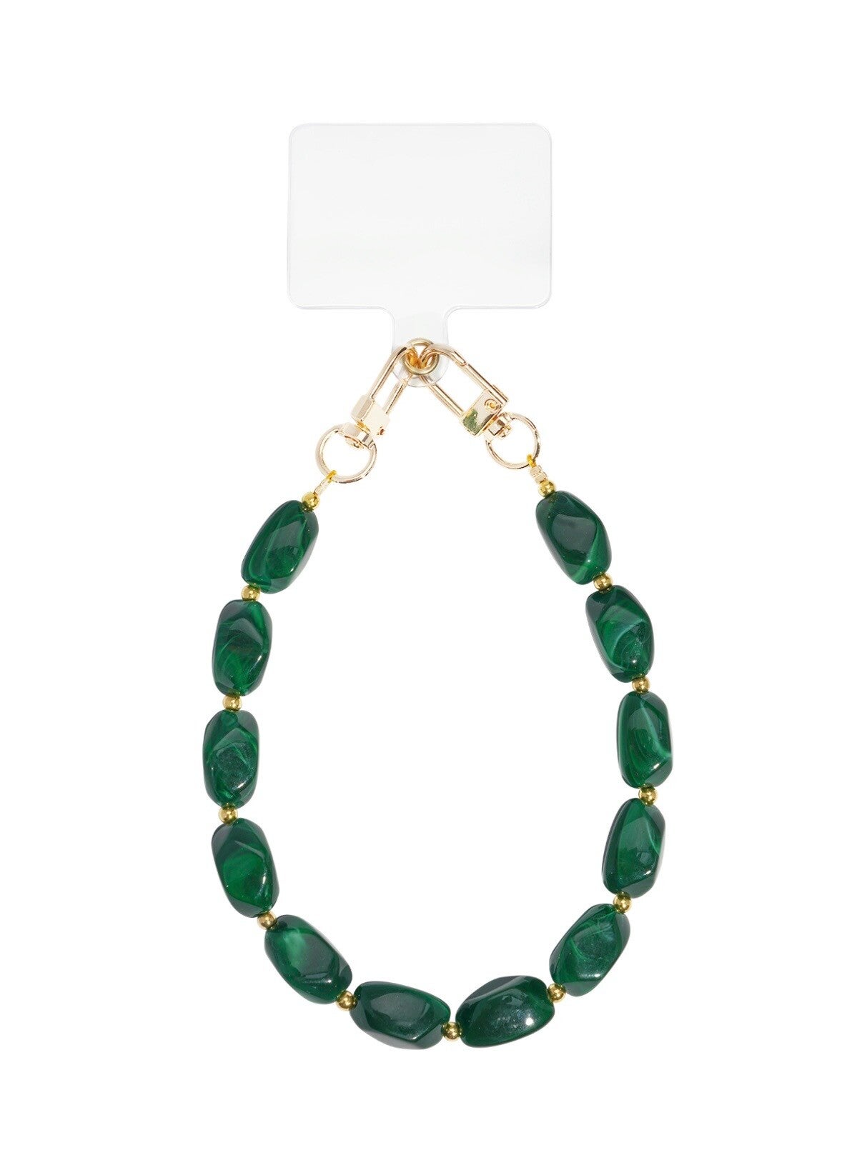 Telefoonkoord pols Kralen acryl - Groen en Donkerblauw