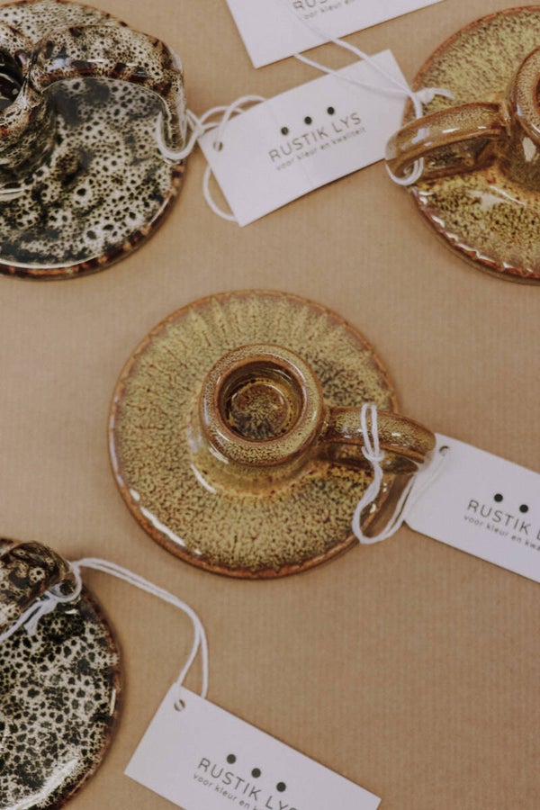 Presenteer jouw kaarsen in deze mooie robuuste kandelaar en maak het thuis net een beetje gezelliger. Gemaakt van aardewerk.
