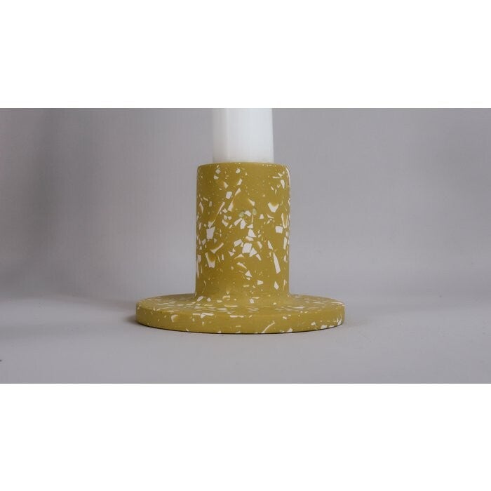 Mooie Terrazzo kandelaars in Scandinavisch design in de kleuren rood, groen en geel. Grootte: 8x6