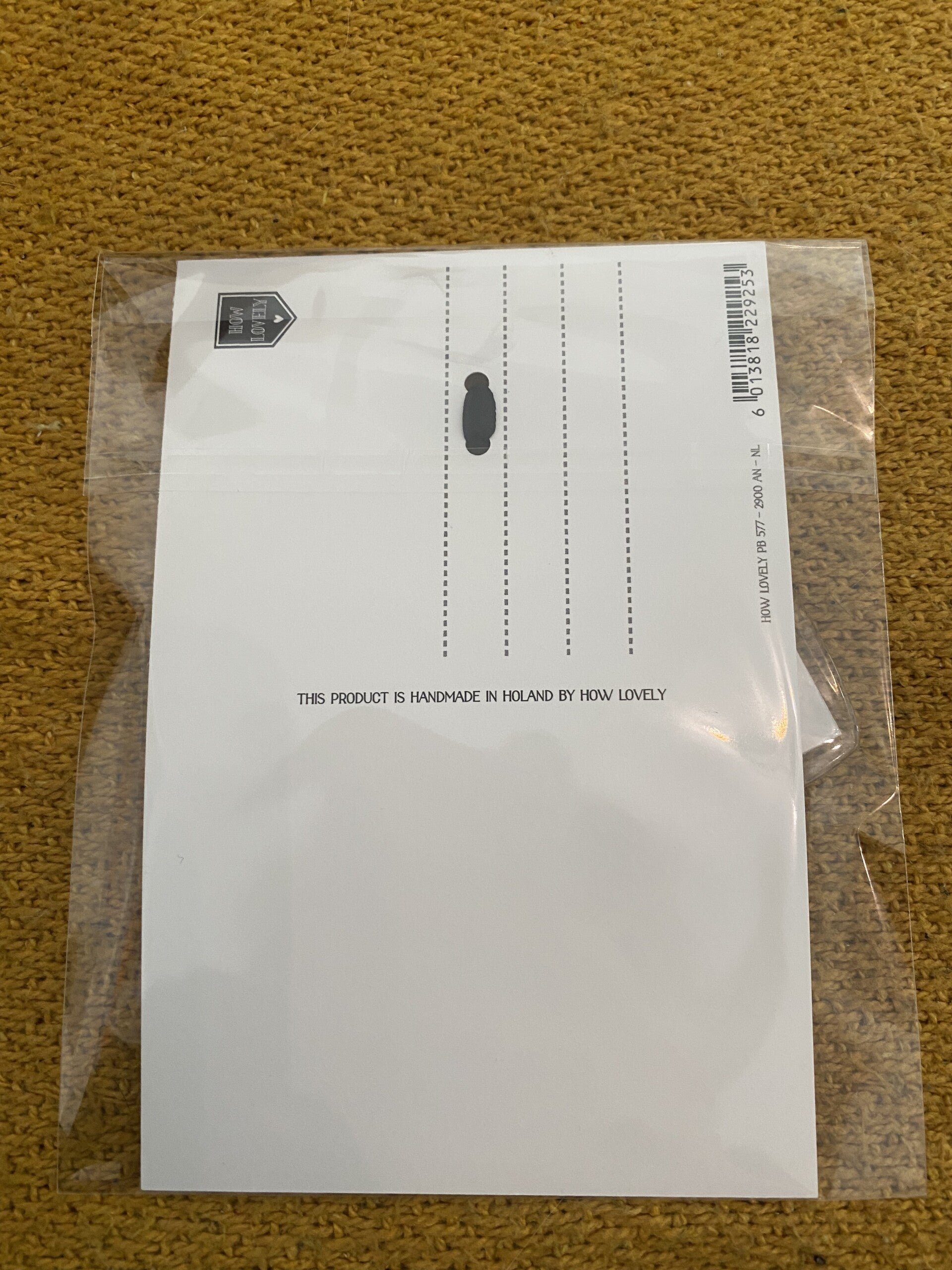 De sleutelhanger is bevestigd aan een kaart (zie foto 2 voor achterkant kaart).