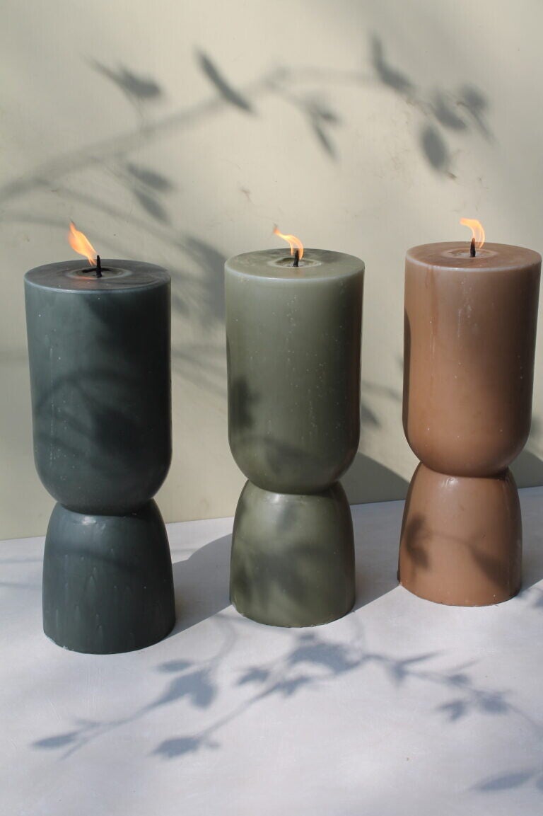 Goed om te weten wellicht dat deze kaarsen zijn gemaakt van rest paraffine. Dit is paraffine dat wordt gemorst of over is na productie en wordt hergebruikt in onze buitenkaarsen. Hierdoor kunnen de kleuren onderling een beetje verschillen, dit is geen productiefout maar de charme van het product. De kaarsen zijn gedipt in onze nieuwe lievelingskleuren voor de tuin: eucalyptus, fudge en grape. De extra dikke lont, niet geschikt voor binnengebruik, maakt dat deze kaars wel tegen een beetje wind en regen kan, zodat je er het hele jaar lol van hebt! Leuk detail: de Giant Sculpture & Triple Sculpture zijn ontworpen door en voor Rustik Lys en vind je dus nergens anders.