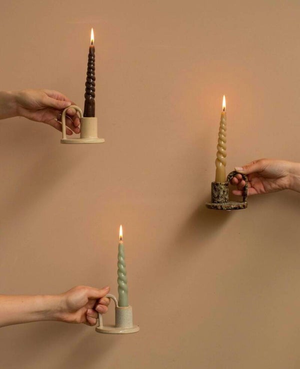 Presenteer jouw kaarsen in deze mooie robuuste kandelaar en maak het thuis net een beetje gezelliger. Gemaakt van aardewerk.