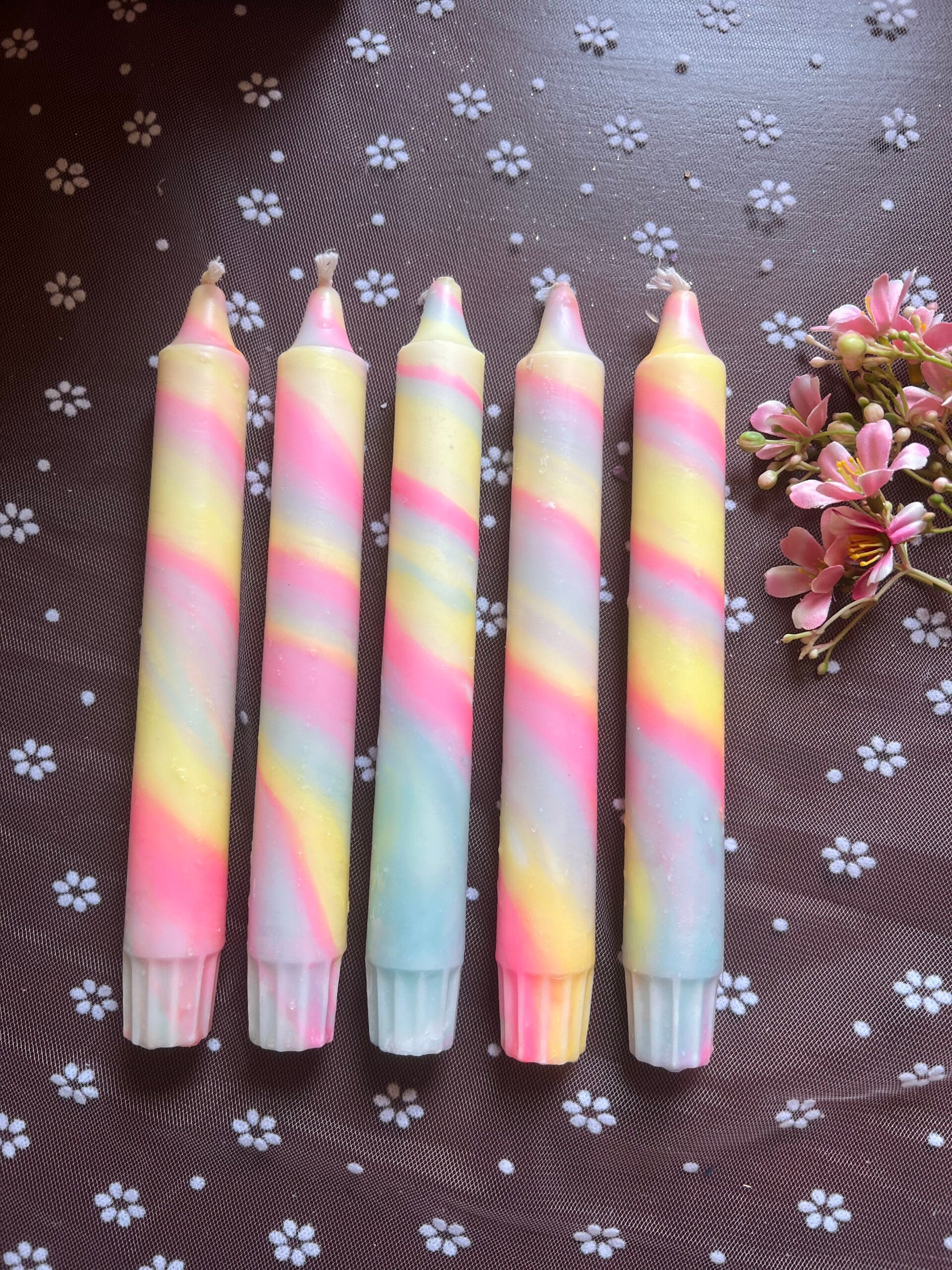 De kaarsen van Noorderlichtjes zijn echte lichtpuntjes en worden met de hand gedipt door Nicky. Door dat de kaarsen met de hand worden gedipt is iedere kaars uniek. De kaarsen hebben het formaat van een standaard dinerkaars (19 cm) en passen in de meeste kandelaars.