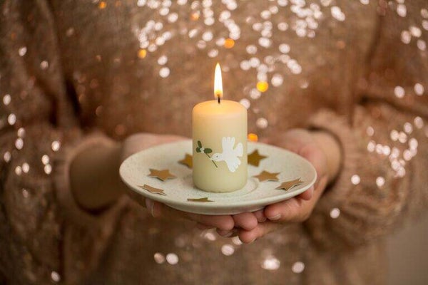 Bij Rustik Lys zijn ze gek op printjes. Daarom bedachten ze hun eigen lijn: By Kimmi. De By Kimmi kaarsen beginnen met een getekende schets, dat wordt vertaalt in een digitaal ontwerp en wordt vervolgens met veel aandacht één voor één op de kaarsen gedrukt. Speciaal voor the most wonderful time of the year hebben ze een kerstcollectie uitgebracht, waaronder deze mooie set van 2 kaarsen met een vredesduif printje.