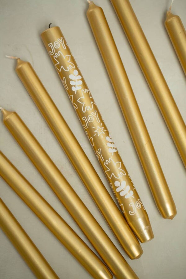 Goud en zilvern horen bij Kerst. Deze dinerkaarsen van Rustik Lys zijn wit en voorzien van een metallic goudkleurige of zilverkleurige spray. De kaars is dus niet door en door gekleurd. De kaars is verpakt ter bescherming, deze kaars is namelijk iets kwetsbaarder. De kaars wordt per stuk verkocht.