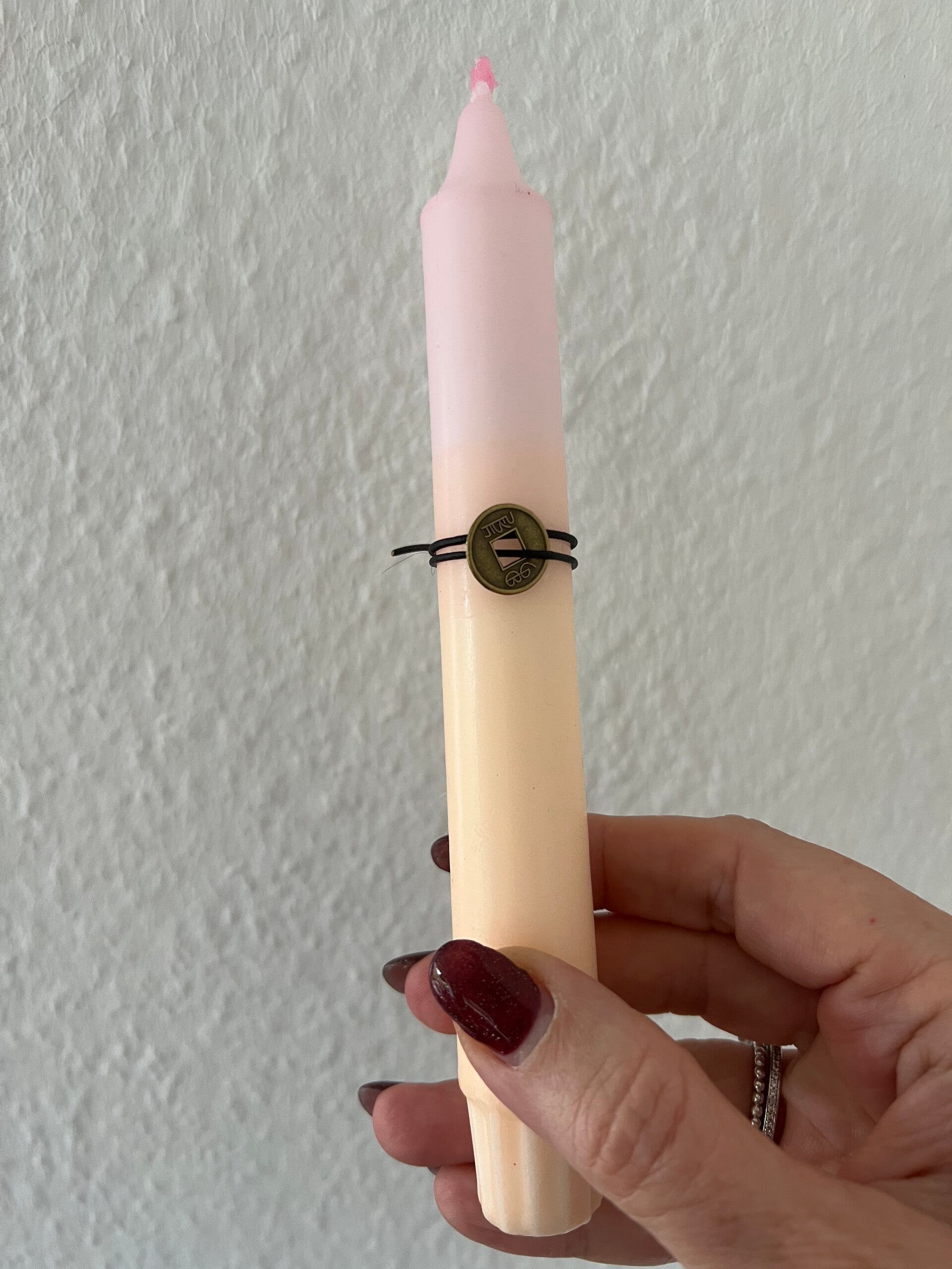 Deze kaars met geluksmuntje is bij uitstek geschikt om iemand die je lief is geluk te wensen.