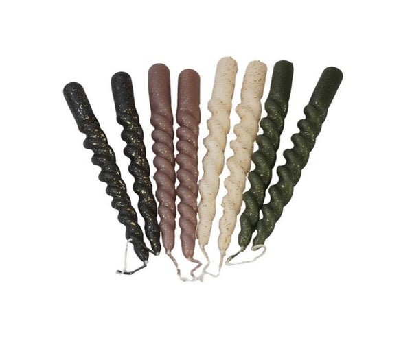 Deze mooie swirlkaarsen hebben een goudglitter, waardoor ze nog meer shinen. Het is een setje van 2 kaarsen.