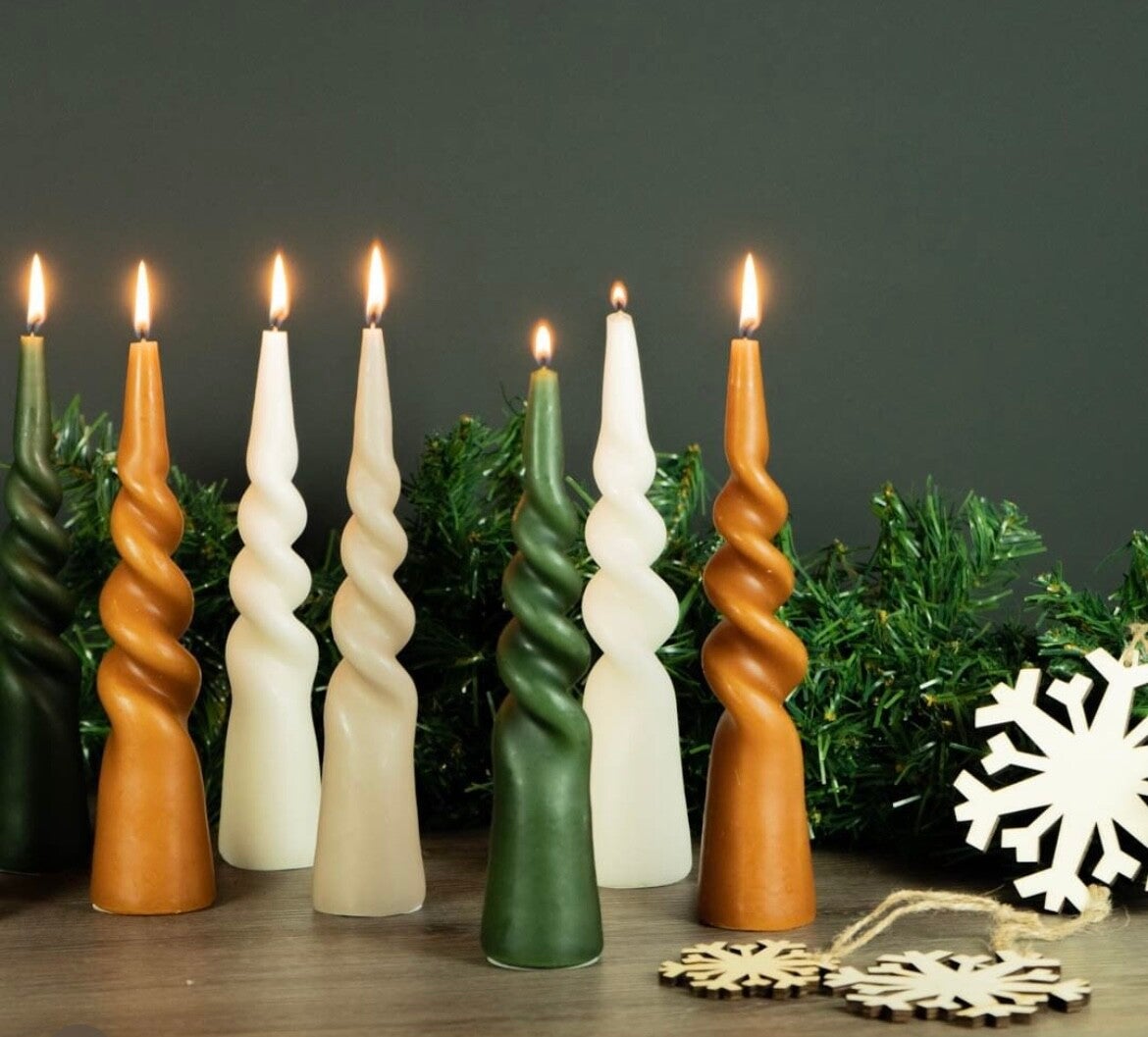 Twisted op een andere manier. Hip en eigentijds deze nieuwe kaars. De onderkant van de kaars is 5cm in diameter en kan dus zelfstandig staan. Hoe leuk om dit te combineren met gewone kaarsen en twisted dinerkaarsen. Strak en modern met een twist. Verkrijgbaar in de kleuren: Ginger, Groen, Moonlight en Off white.