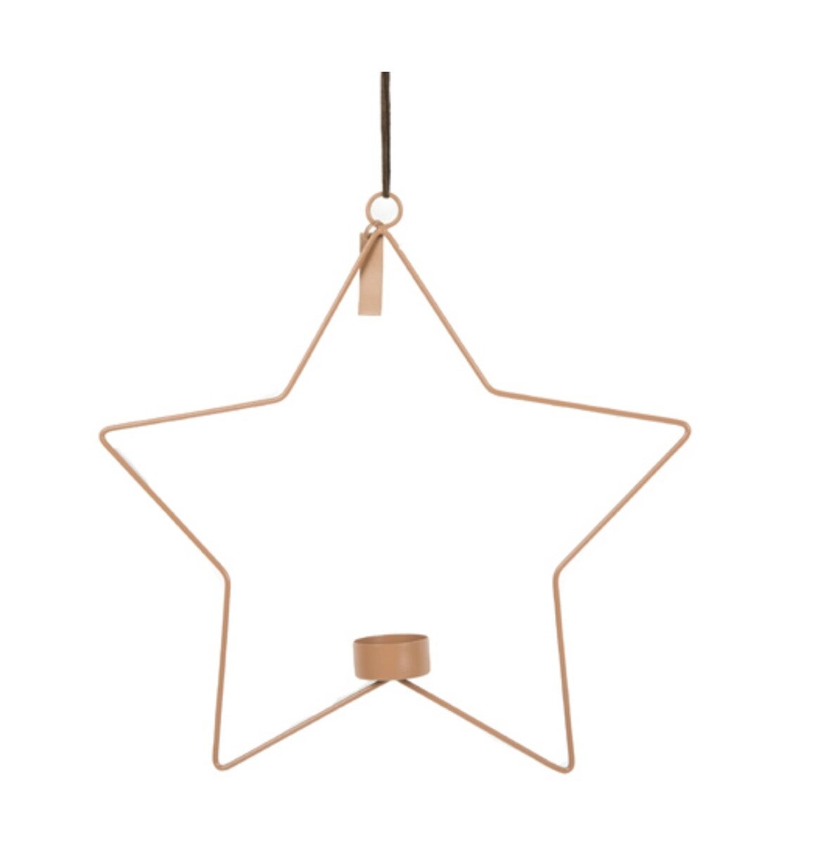 Hangende waxinehouder in de vorm van een ster in de kleuren Nude en Goud.