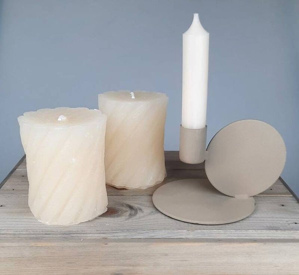 Hoe leuk zijn deze vorm kaarsen? Het is een stompkaars met een twist! Ze noemen de kaarsen bij Branded de pillar Spin...oftewel gedraaide stompkaars. Om het nog leuker te maken zijn deze verkrijgbaar in 3 verschillende kleurtjes; Offwhite, Antique pink en Taupe.