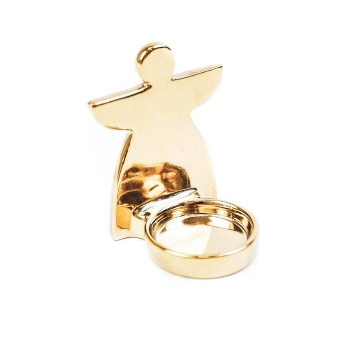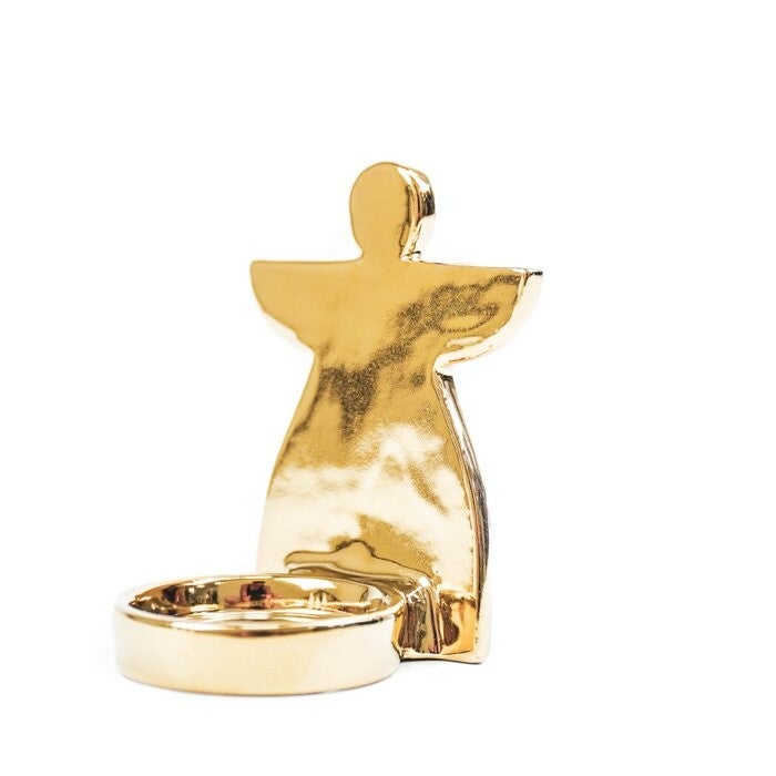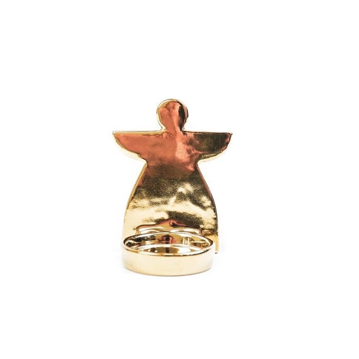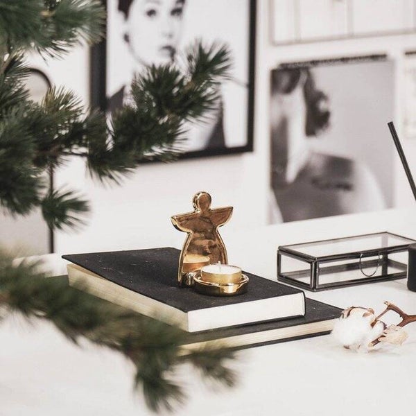 ANGEL OF MINE- Een eettafel zonder kandelaren is een eettafel zonder ziel. Kaarshouders zijn mooi om te zien en brengen veel ambiance. Je hebt nooit genoeg kaarshouders, want je kunt ze makkelijk en eindeloos mixen en matchen. Deze gouden waxinelichthouder met engel is een betoverende een gouden sparkle.