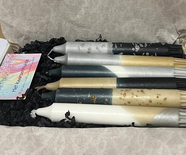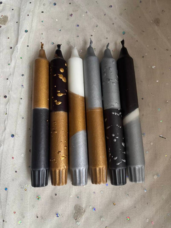 Deze leuke set is gedipt in zwart, zilver, goud, grijs en licht taupe.